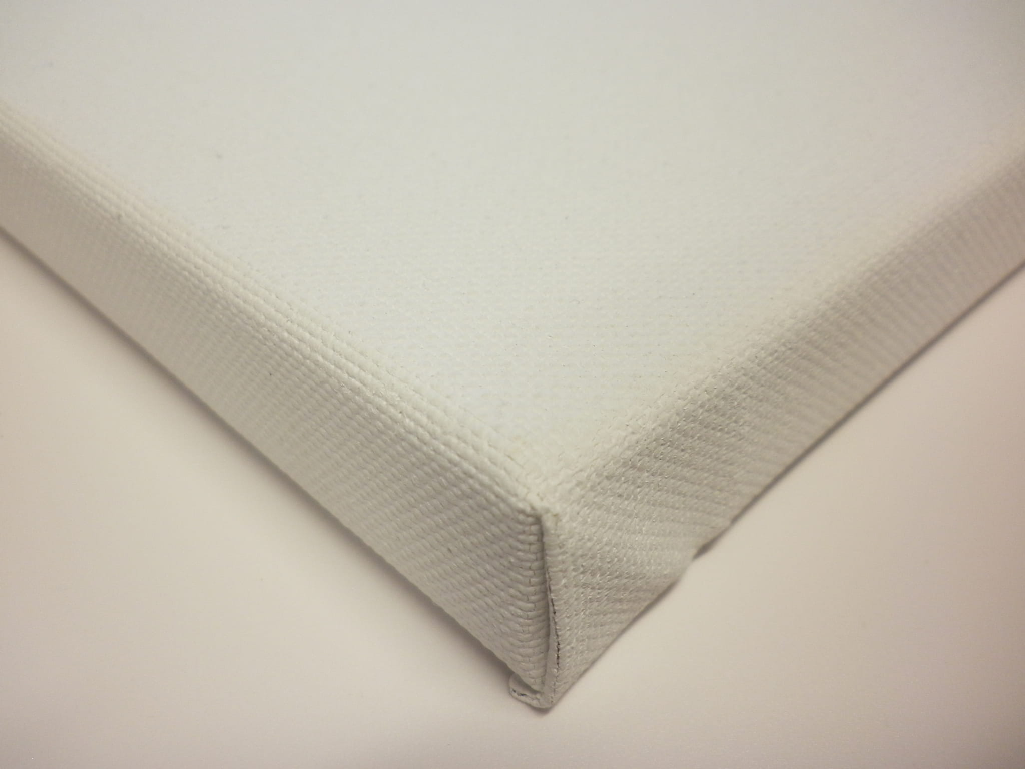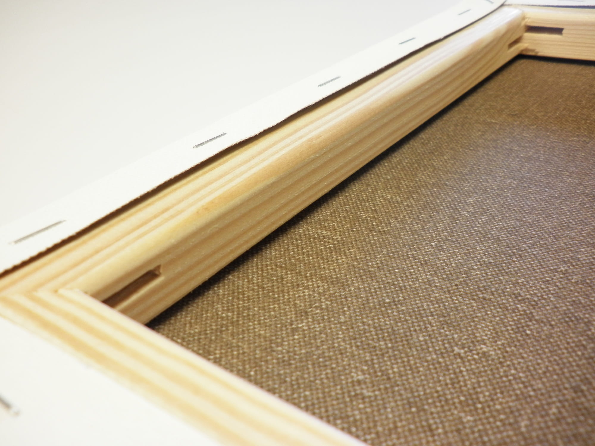 • płótno naciągane maszynowo, mocowane zszywkami z tyłu listwy, co daje możliwość zamalowania boków